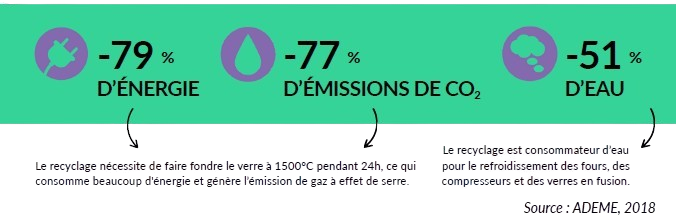 Comparé à l’usage unique recyclé, le réemploi permet d’économiser :